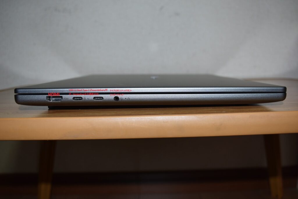 重さは約1.7kgと、16インチノートとしては十分持ち運びやすい。